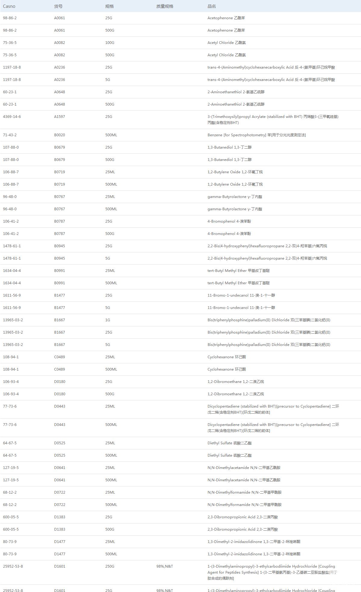 TCI(中文名稱:梯希愛)總公司為(wèi)東京化(huà)成工業株式會社,在全球有多個(gè)子(zǐ)公司,分(fēn)布于亞洲、北美洲、歐洲等,是世界上(shàng)幾個(gè)曆史悠久的試劑公司之一(yī)。東京(TCI)公司以60多年積累和打造的獨特有機合成技術為(wèi)基礎,建立起了(le)一(yī)支年輕的高、中級特殊有機化(huà)學合成技術梯隊,除了(le)合成TCI現(xiàn)有目錄中的試劑,還将不斷地研究開發出各種新(xīn)的有機化(huà)學品以滿足世界化(huà)學界日益發展的需求,用高品質的有機化(huà)學試劑服務(wù)于各行各業的研究和開發,為(wèi)世界的化(huà)學産業和社會的發展作(zuò)貢獻。